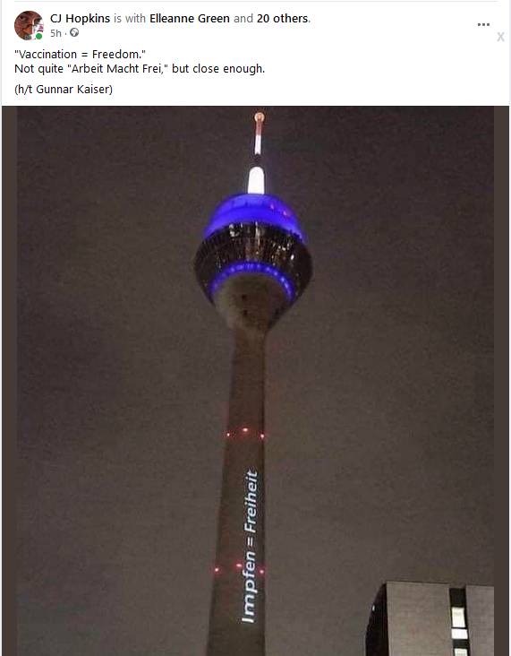 The point is, apparently, the Corporatocracy feel sufficiently threatened by random people on Facebook that they are conducting these COINTELPRO-type ops. Seriously, think about that for a minute. I am not Stephen King or Margaret Atwood. I’m not even Glenn Greenwald or Matt Taibbi. I’m a midlist-level author of unusual literature, and a political satirist, and a blogger, basically, and yet Facebook, and their partners at the Atlantic Council, and AstraZeneca, and Pfizer, and Moderna, and who knows which other global corporations and transnational, non-governmental entities like the WEF and WHO, consider someone of my lowly status enough of a threat to their “New Normal” narrative to warrant the attention of the Reality Police.