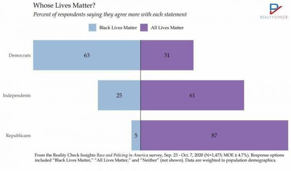 A survey conducted last year found that a majority of Americans agreed more with the statement “all lives matter” compared to “black lives matter.”